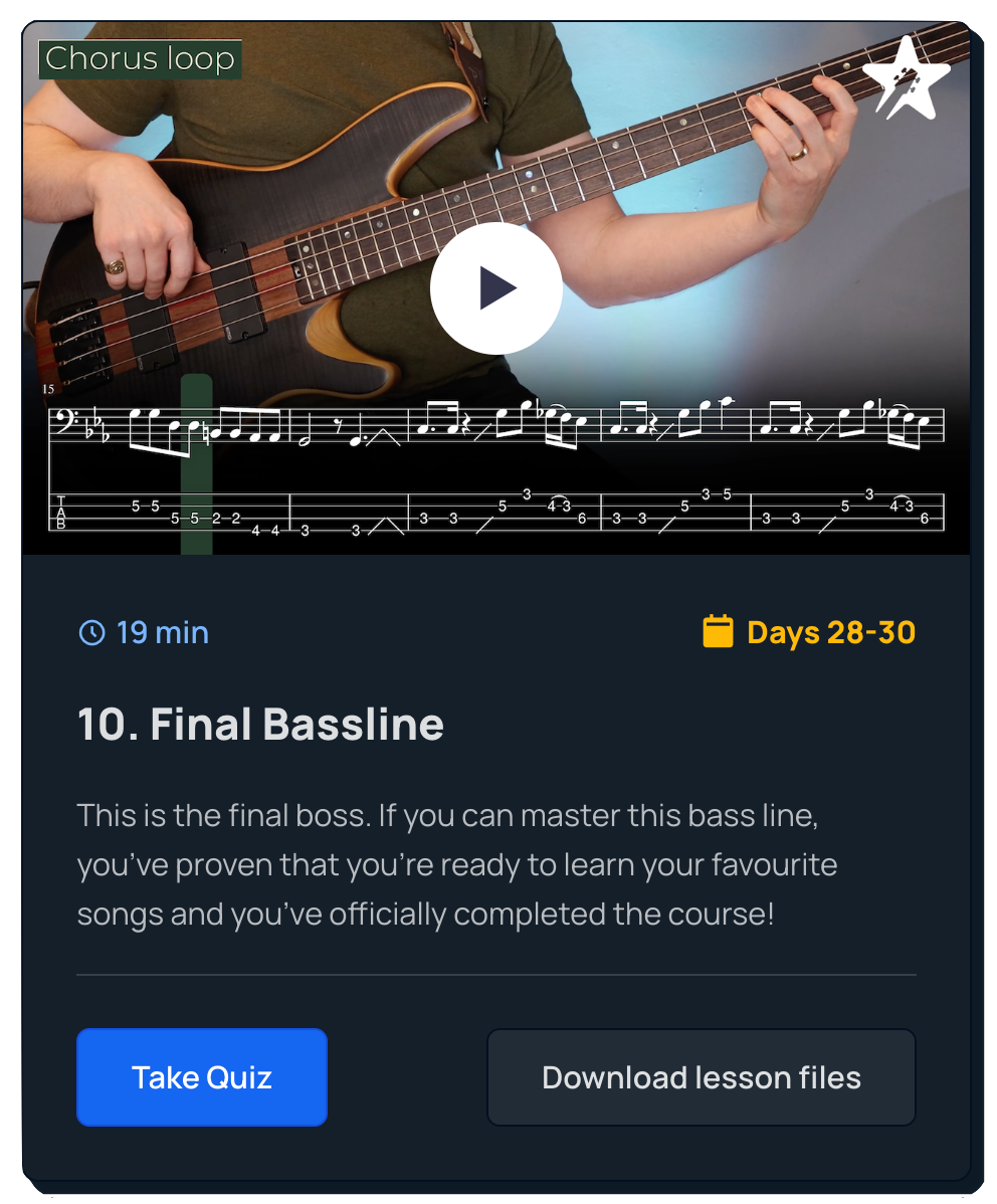 Whether you want to breeze through in 30 days or take it slow, this course fits your pace. Learn bass the way that works best for you!